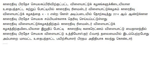Karaitivu Reminder Sports Club Beaten Karaitivu Sports Club by 4-0(Photos)