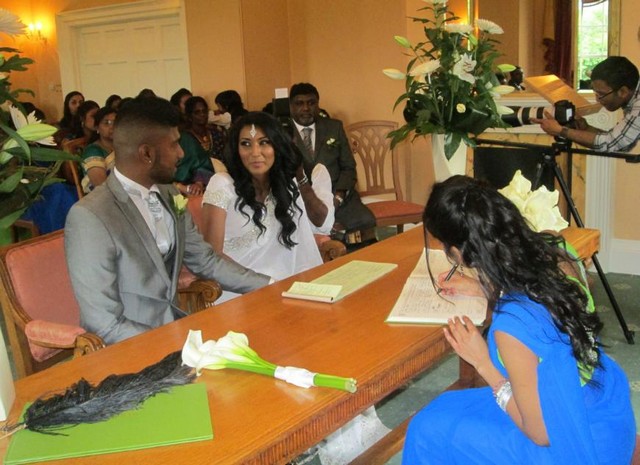 Mr&Mrs.Sri Vino's son Kajan & Mr&Mrs.Pragalathan Saththiyavani's daughter Sinthu's wedding registration was held on 14/06/2014 in London(Photos)