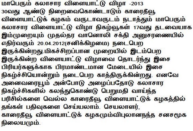 K.S.C. Annual Cultural Sports meet will be on 20/04/2013(attachment)