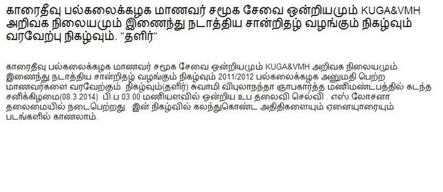 Nenasala certificate Ceremony & Welcome Function was held on 08/03/2014 (Photos by Kajan)
