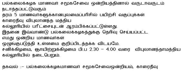 Training Scholarship Examination for Grade 5 students began by the Karaitivu University Student Union Social Service at Vipulananda central College(Photos)