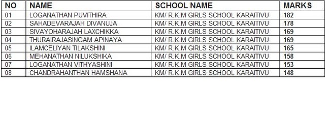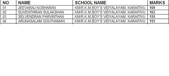 Year-5 Scholarship 2012 (Karaitivu) passed students Details(attachment)