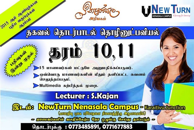 New Classes for Grade 10 and 11 ICT Students at Karaitivu NewTurn Nenasala Campus(attachment)