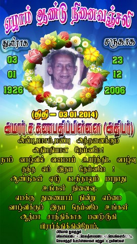 Seventh Year Remembrance of Late.S.Kanapathipillai (Ret.Principal)(Saana Kaana)(attachment)