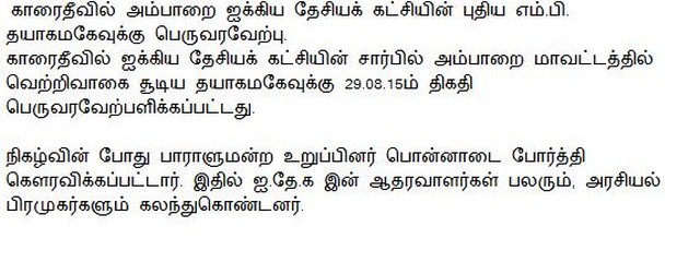 Warm Welcome for U.N.P MP Thayakamage at Karaitivu(Photos)