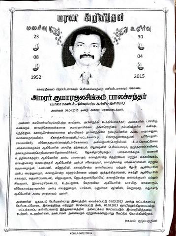 Obituary Notice of Kumarakulasingham Balachandar(English teacher)(attachment)