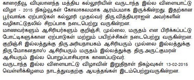 Karaitivu Vipulananda Central College Inter House Sports Meet starts on 05/02/2015 and finishes on 13/02/2015(attachment)