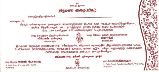 Late V.T.Sellathrai(Ret.Principal) & Late Arudsivam(A.G.A)'s grand daughter & Kanthan Vadiva's daughter Prashanthi marries Mr&Mrs.Anton Yogaraj's son Leon Luxshanth on Saturday 07/06/2014(Christian wedding) & Sunday 08/06/2014(Hindu wedding) in Australia(attachment)
