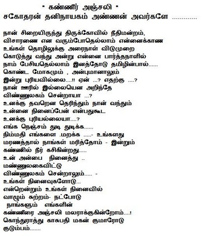 "Kanneer Anjali" for Late Thaninayagam by Kontharaththu Kasupathy's son Kumar(Germany)(attachment)