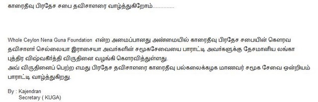Our wishes for Karaitivu chairman ( attachment by KAJU )
