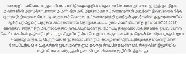 Navaneethan(Neethan/France)'s mother & Late Thadsanamoorthy(Ret.Principal)'s wife Arulamma's 1st Death Anniversary & Book Publishing for Year-5 Students on 07/03/2013(Photos)