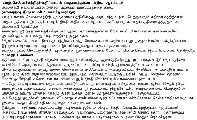 KATHIRKAMAM PILGRIMAGE NEWS(Photos)