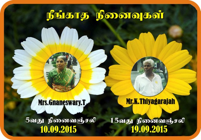 Thiyagarajah Muthalali's 15th Death anniversary & his wife Ganeswary's 5th Death anniversary on 19/09/2015 & 10/09/2015(Photo)