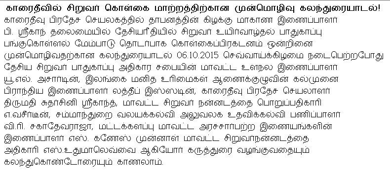 Child Rights Protection Programme was held at Karaitivu D.S.office on 06/10/2015(Photos)