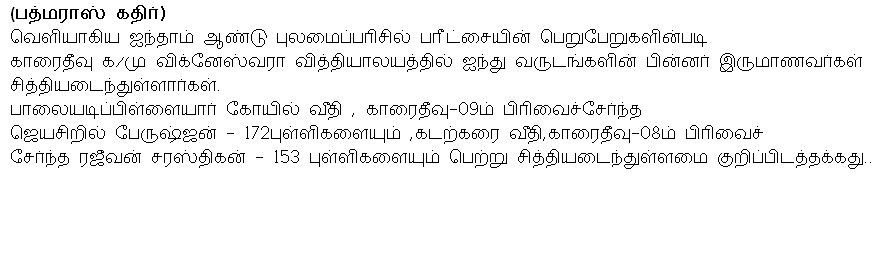Two students have passed Year-5 scholarship exam at Karaitivu Vicneswara Vidyalayam after 5 years(Photo)