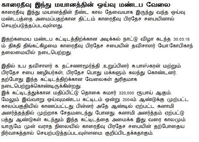 Karaitivu Hindu Cemetery Rest Hall construction work started(Photos)