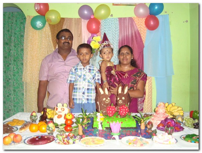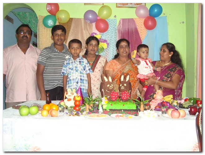Mr and Mrs Arulvanan jayatharisini daughter Ethursiha 1 st birthday celebrating on 07/04/2012 at karaitivu-05. Wishing Grandfather K.V.Paranirupasingam,Grandmother Annaladhumy and all family. -- P.Sivatharisan 112/B,Sarathapuram. Karaitivu-05. Srilanka