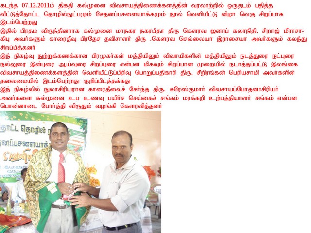 BOOK RELEASING CEREMONY ON HOME GARDEN TECHNOLOGY & COMPOSTING BY MR. S.SURESHKUMAR (A I)(Photos)