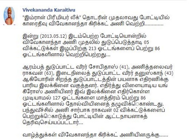 V.S.C won in 20-20 in Imbran Premier League Cricket match(attachment)