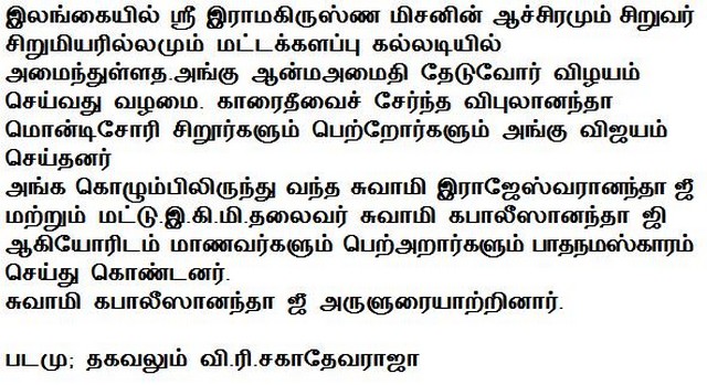 Karaitivu Vipulananda Montessori Students & Parents visited to Batticaloa R.K.M. home(Photos)