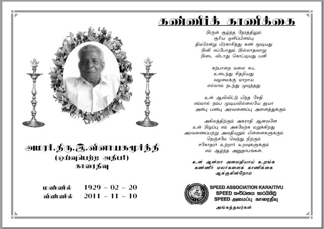 Late.Mr.E.Vinayagamoorthi (chairman)'s funeral and Notice (photos by:SPEED Association Karaitivu)