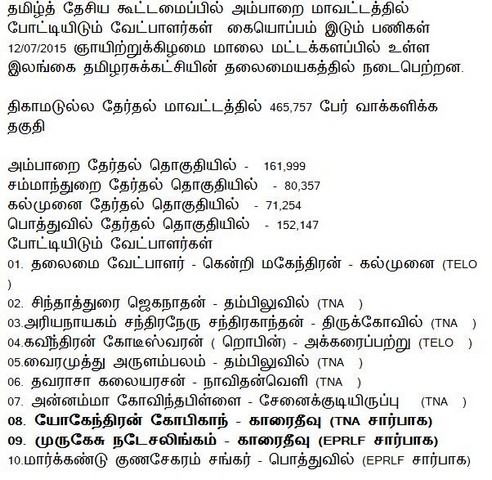 Ampara District Tamil Candidates for Election 2015(attachment)