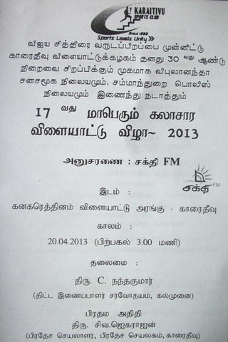 K.S.C. Annual Cultural Sports meet will be on 20/04/2013(attachment)
