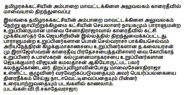 Ampara district T.N.A. office opened by Mavai Senathirajah at Karaitivu(Photos)