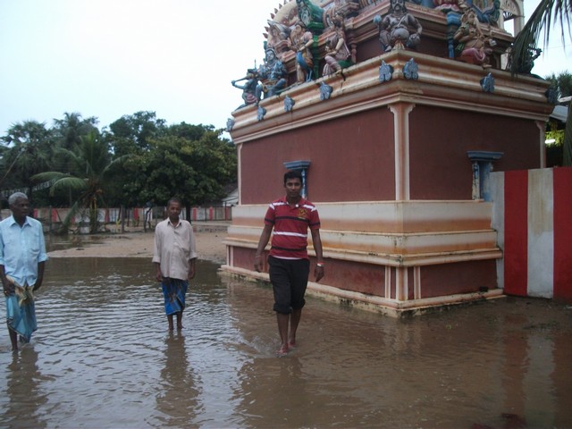 Flooded at Karaitivu Kandaswamy Kovil(Photos by Priyatharsan)