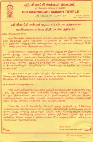 Fund raising for Madathadi meenadchi amman temple.(attachment)
