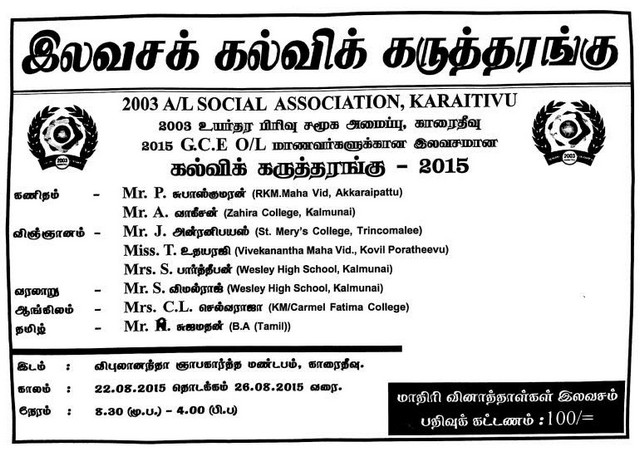 Free Education Seminar by 2003 A/L Social Association Karaitivu(attachment)