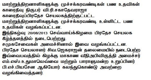 Three-Wheeler & Cash assistance for Disable people at Karaitivu(Photos)