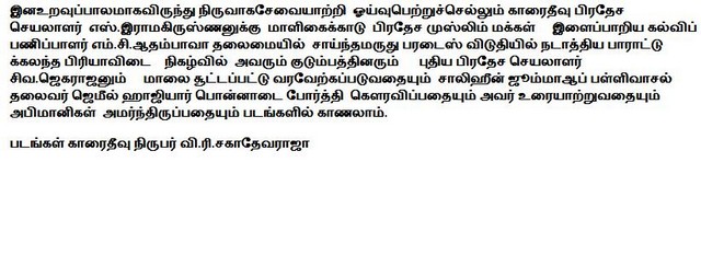 Muslim Public Honoured Rtd.D.S. Mr.Ramakrishnan at Malikaikadu(Photos)