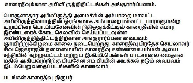 Development work started by M.P.Piyasena at Karaitivu(Photos)