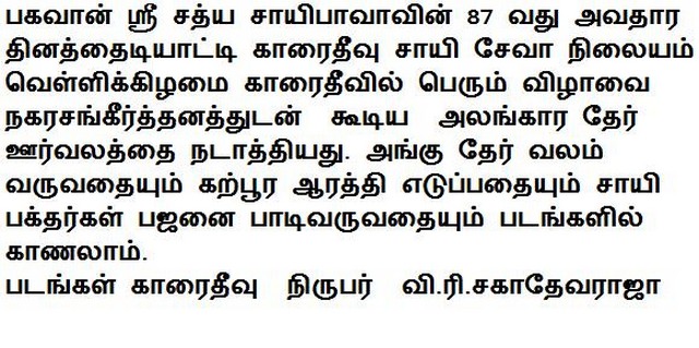 Sai Baba's 87th Birthday celebration at Karaitivu(Photos)