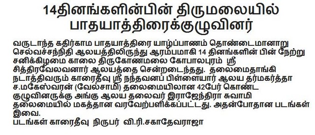 Kathirkamam Pilgrimage news(Photos)