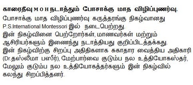 The month of Nutritional Awareness seminar event was held at Karaitivu P.S.International Montessori(Photos)