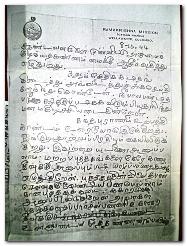 Front Page of "Yarlnool" and Letter written by Swami Vipulananthar to Marumahal Kannammakka(Photos&attachment)
