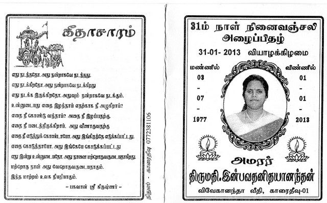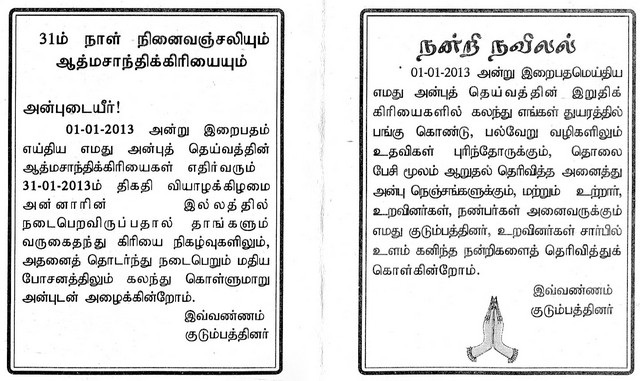 Thirty First Day of Late Inpavathani Thayananthan(attachment)
