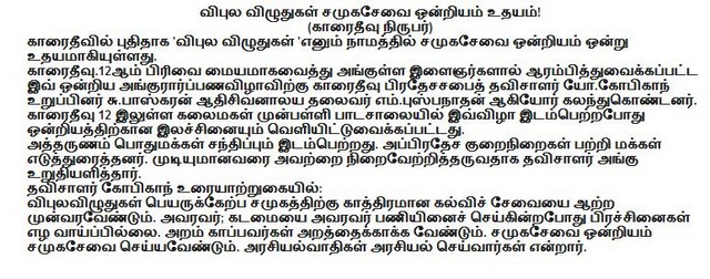 "Vipula Viluthukal" social service started at Karaitivu(attachment)