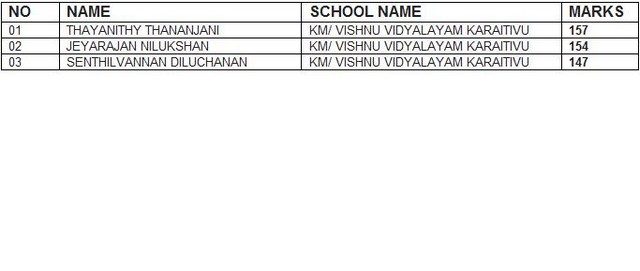 Year-5 Scholarship 2012 (Karaitivu) passed students Details(attachment)