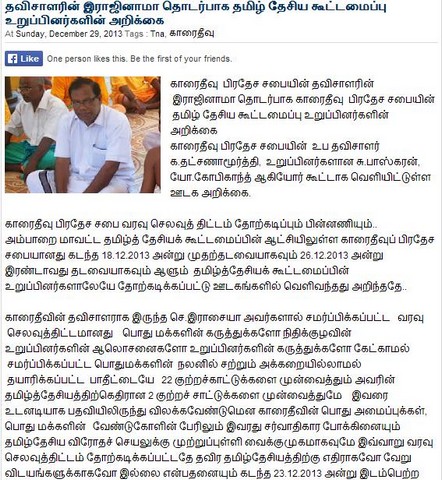 Report of other Karaitivu P.S.Members on Chairman's Resignation(attachment)