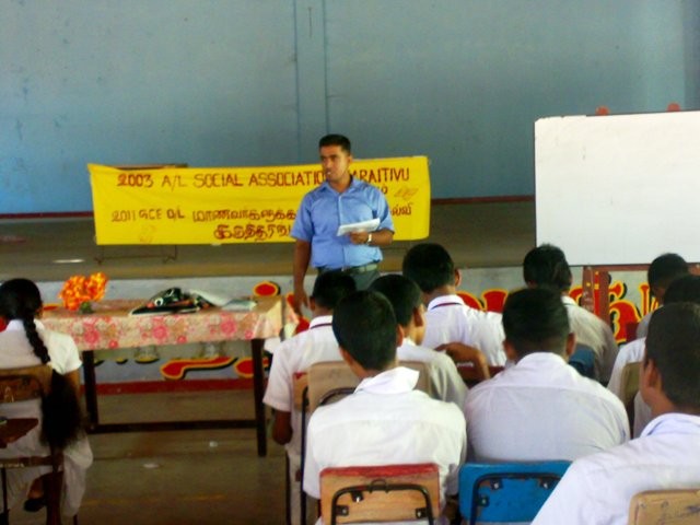 "2003 A/L Social Association Karaitivu ,conducted a 5 days free seminar programme for O/L students in Vipulananda Central college Karaitivu last week for Tamil,Science,Maths,English &History."