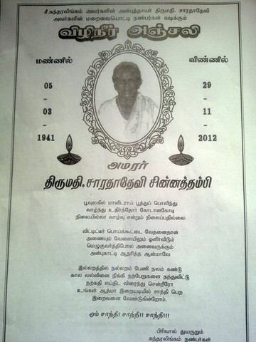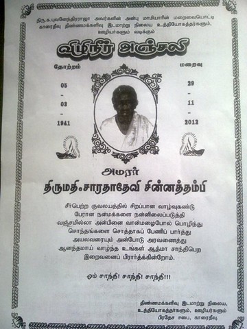 Perya Kadiyar's wife & Mother of Amirthalingham(Driver),Sundralingham & mother in law of Puvanenthirarajah "Sarathathevi(Pooranam)" passed away(Karaitivu-10)(attachment)